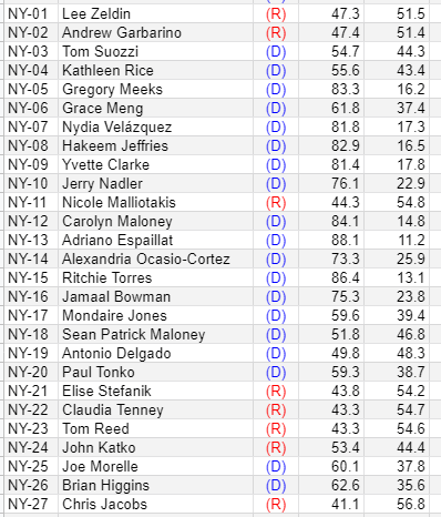 Daily Kos has published Presidential election results by NY Congressional district-Here they are https://docs.google.com/spreadsheets/d/1XbUXnI9OyfAuhP5P3vWtMuGc5UJlrhXbzZo3AwMuHtk/edit#gid=0