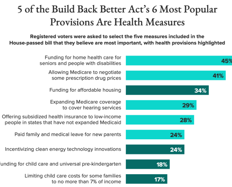 Every Republican incumbent voted against Build Back Better. Democrats won’t be mentioning the name of this legislation in their campaigns, but Democrats need to tell voters what they support and what Republicans voted against when it comes to the specifics. A Politico/Morning Consult Poll from last December shows the depth of public support on BBB specifics, especially health care: